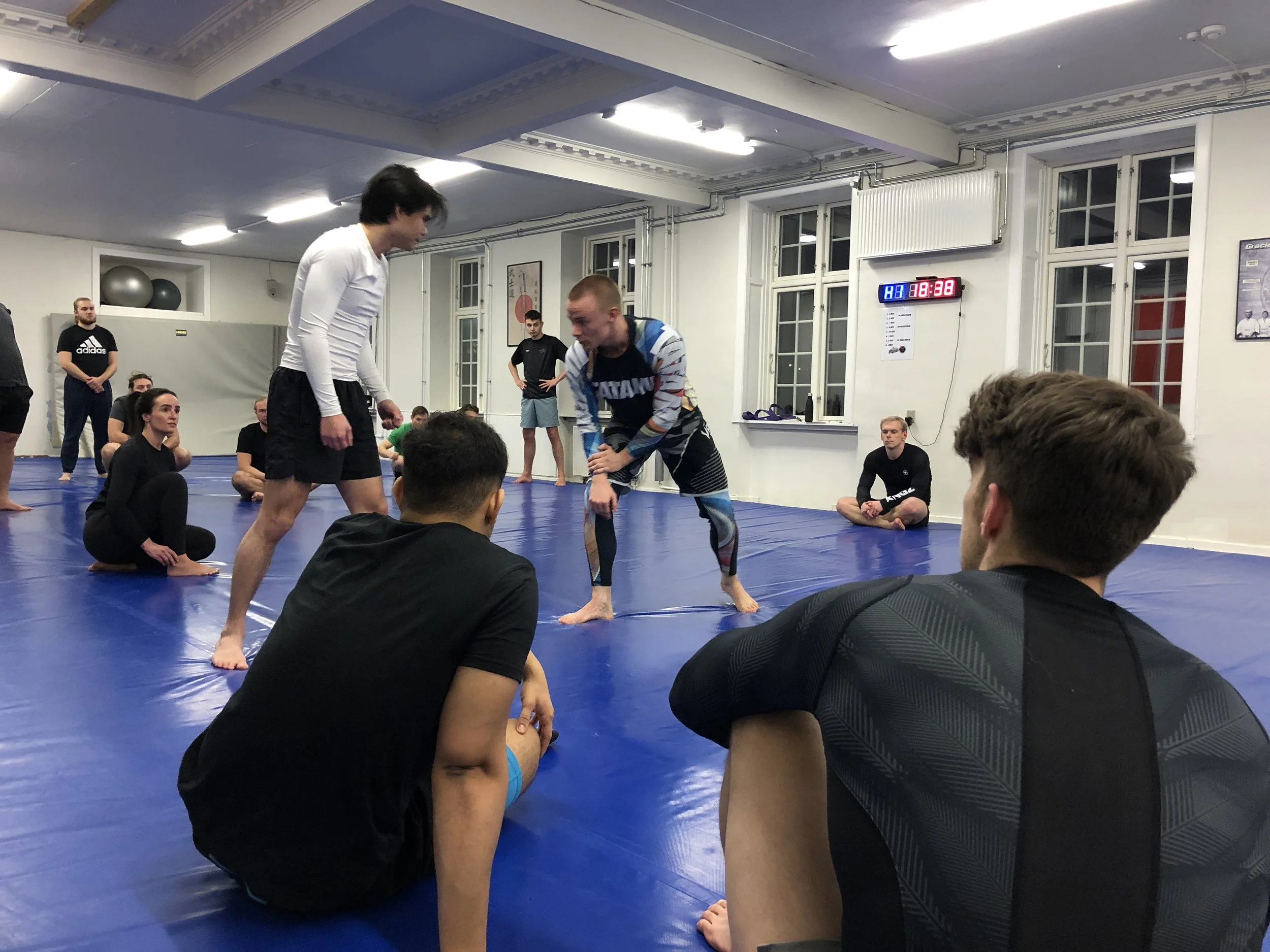 Erik (th. på billedet) er fast instruktør på klubbens no-gi begynderhold. Han har trænet brasiliansk jiu jitsu i snart 5 år og er lilla bælte. Erik blev bidt af brasiliansk jiu jitsu uden at have dyrket kampsport tidligere. For ham var det den lidt nørdede og tekniske del af sporten, og den regelmæssige sparring, som var tiltalende. Erik er uddannet psykolog, og har en stor interesse for formidling og læring, som kommer til udtryk i en åben tilgang, hvor der altid er plads til spørgsmål og til at udforske detaljer og nuancer i fællesskab. Erik har haft stor interesse for den moderne no-gi del af sporten, herunder benlåse og trækker især inspiration i sin undervisning fra Gordon Ryan, John Danaher og Lachlan Giles.